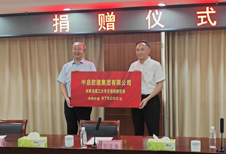 7月25日上午,中啟膠建集團有限公司向青島理工大學(xué)捐贈空調(diào)儀式在的青島理工大學(xué)圖書科技樓1908會議室隆重舉行。中啟膠建集團董事長、總經(jīng)理郭道盛,青島理工大學(xué)黨委常委、副校長郭建鋒出席儀式并致辭。公司董事、副總經(jīng)理、華東公司經(jīng)理徐奎學(xué)、華東公司副經(jīng)理周孟哲,青島理工大學(xué)繼續(xù)教育學(xué)院黨總支書記孫川三、資產(chǎn)與實驗室管理處處長劉盛東、基本建設(shè)處副處長張國昌等領(lǐng)導(dǎo)參加儀式。